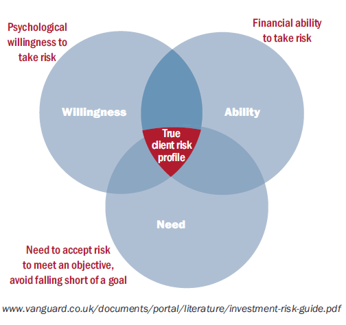 To effectively measure this, their risk profile needs to be established. This is usually defined on a behavioural basis along three different dimensions illustrated in the diagram below. By understanding the true client risk profile and marrying that to the investment goal, a more informed and aligned investment portfolio can be designed, monitored and steered along the path to successfully deliver on the objective with a high degree of certainty.